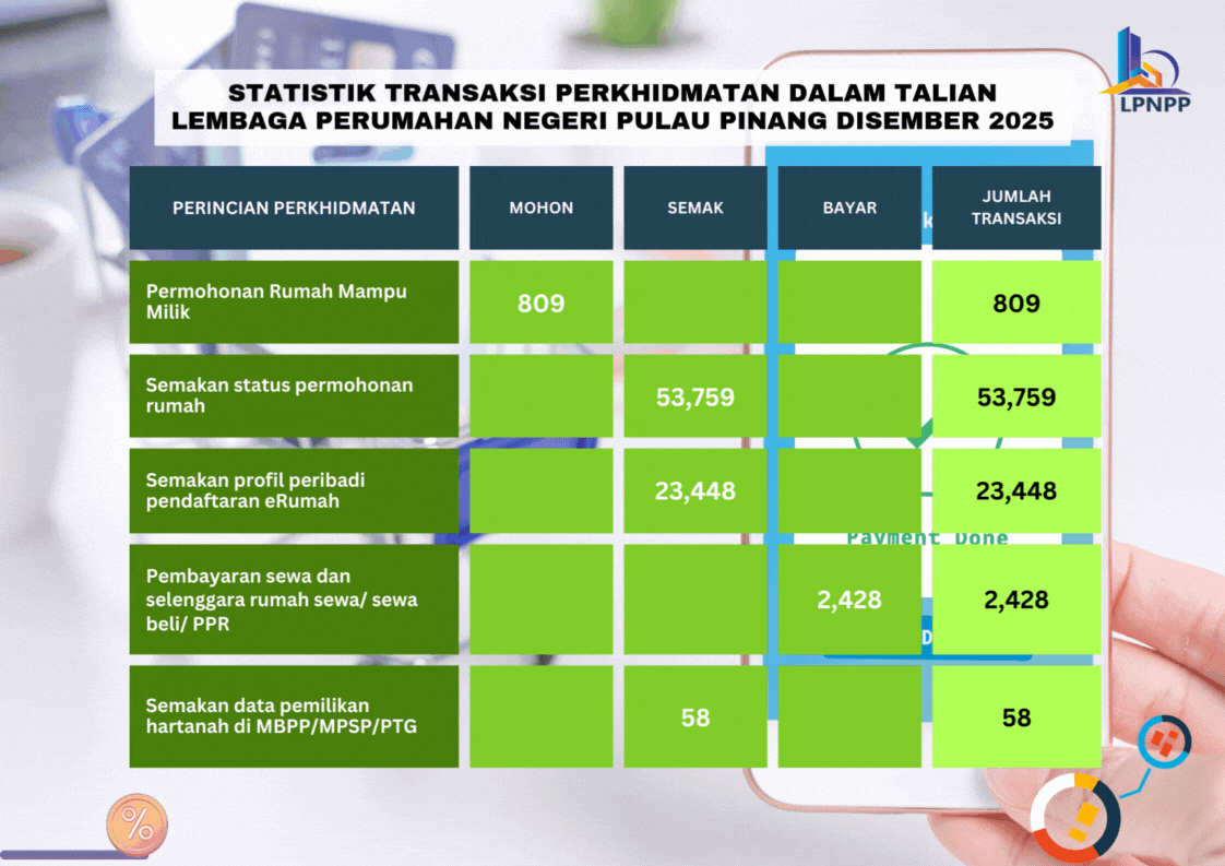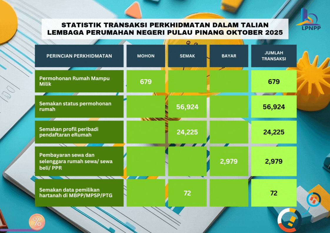Lembaga Perumahan Negeri Pulau Pinang tidak bertanggungjawab ke atas apa-apa kehilangan atau kerugian yang disebabkan oleh penggunaan mana-mana maklumat yang diperolehi dari laman web ini.